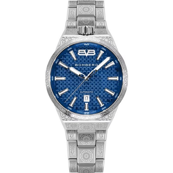 O relógio BOMBERG MYKONOS é inspirado nas cativantes águas azuis da ilha grega. Esse relógio automático fabricado na Suíça apresenta um mostrador azul profundo e requintadas decorações de árvores da vida na caixa e na pulseira. Esse relógio excepcional combina a precisão do artesanato suíço com a beleza da natureza, simbolizando o crescimento, a harmonia e a interconexão. Com seu hipnotizante mostrador azul e intrincados motivos de árvores da vida, esse relógio captura a essência da tranquilidade e da elegância. Eleve seu estilo com esta obra-prima e mergulhe no fascínio de Mykonos onde quer que você vá.