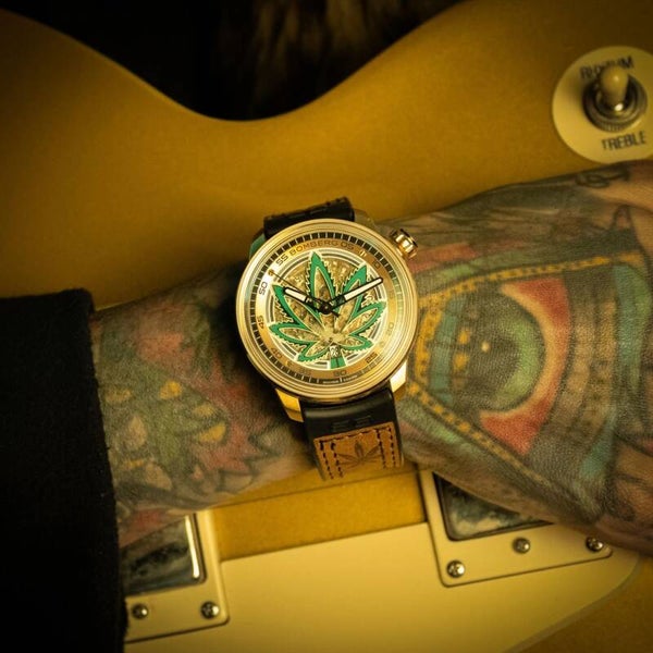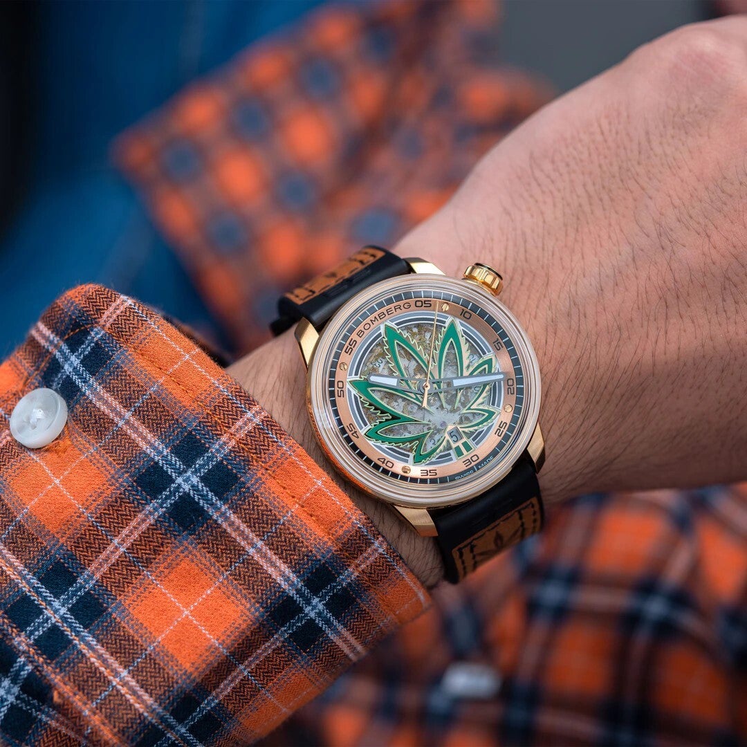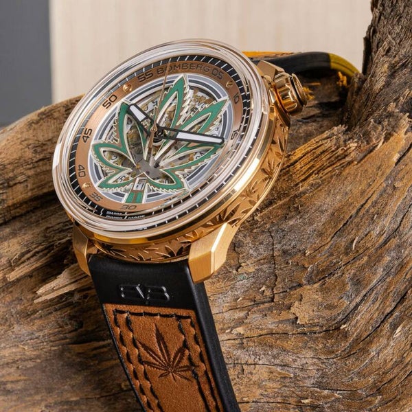 O BB-01 Automatic CBD é um relógio arrojado e exclusivo que apresenta um extrato genuíno de folha de CBD capturado em seu mostrador. A folha de CBD é um símbolo da essência da natureza, e sua localização proeminente no mostrador enfatiza fortemente o design exclusivo do relógio.