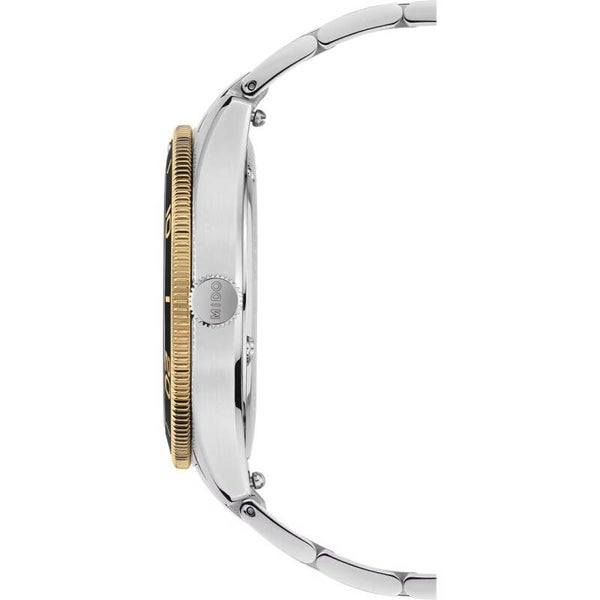 Vá em uma aventura no mar ou em terra, mas sempre com muito estilo! A MIDO certamente revela seu companheiro mais versátil e confiável e o modelo de relógio esportivo Ocean Star de todas as fugas. Seu diâmetro perfeito de 39 mm, o primeiro da coleção, é combinado com uma bela caixa fina para Ocean Star. A estética deste relógio automático também se distingue por seu padrão exclusivo de mostrador em relevo – uma reminiscência do movimento das correntes marítimas na areia. Resistente a uma pressão de 20 bar (200 m/660 pés), a famosa estrela do mar, um emblema da experiência histórica da relojoaria da MIDO em resistência à água, aparece no fundo da caixa rosqueado.